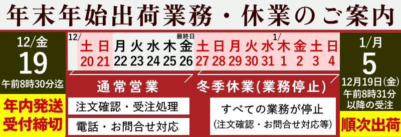 年内の発送受付は終了致しました。